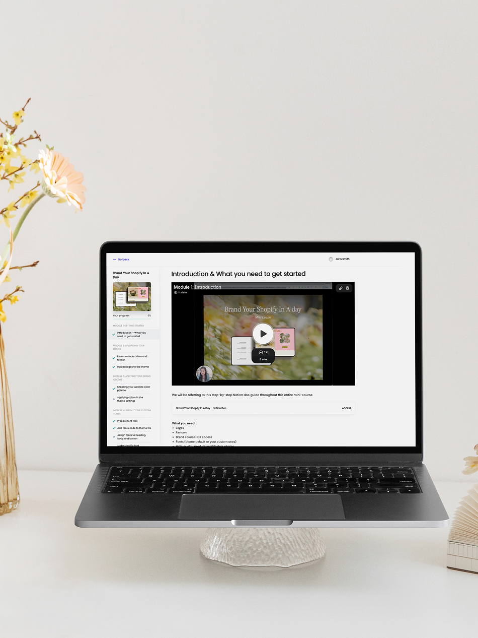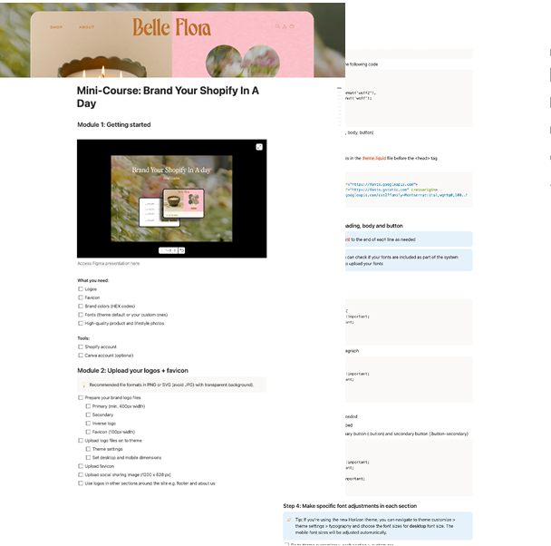 This mini course shows you exactly how to change that. Using your own logo, colors, fonts, and photos, you will learn how to transform your store into something that feels intentional, elevated, and unmistakably yours.